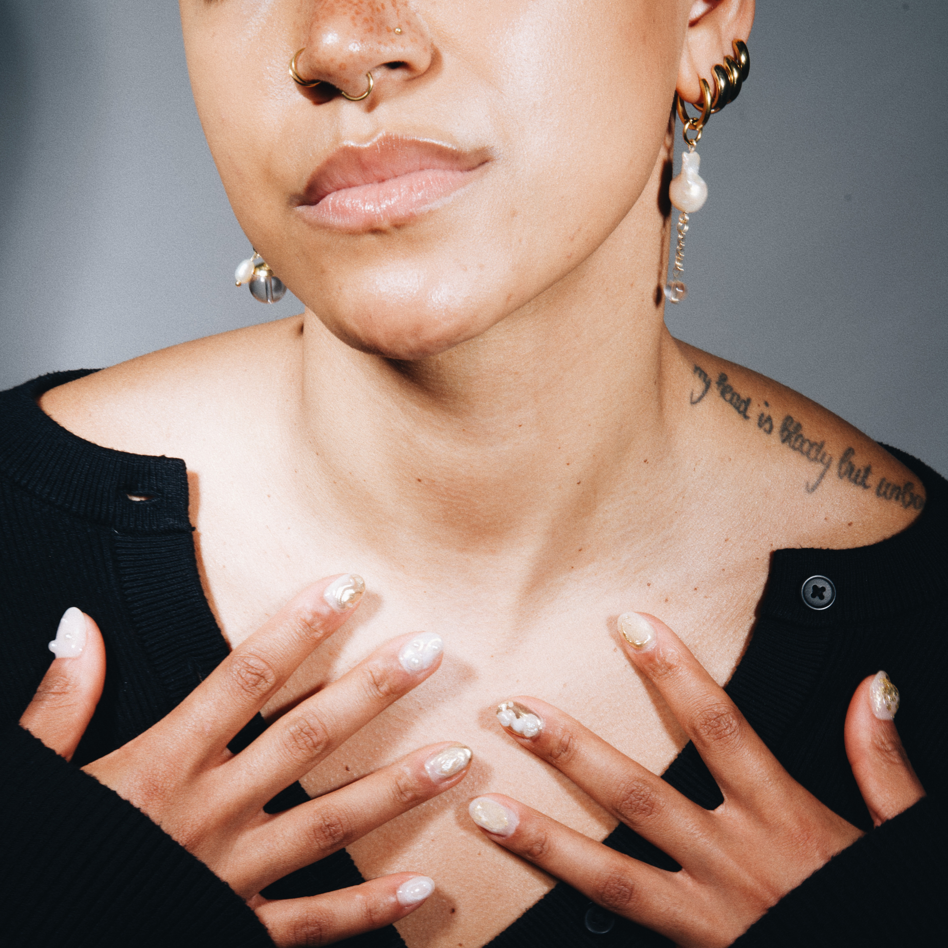 GOLDEN EYE is for the ones who like their shine loud and their energy golden. this set pairs one FIRSTBORN and one LATE BLOOMER earring — a duo that feels effortless, elevated, and just the right amount of dramatic.